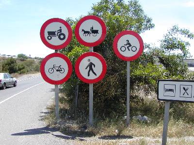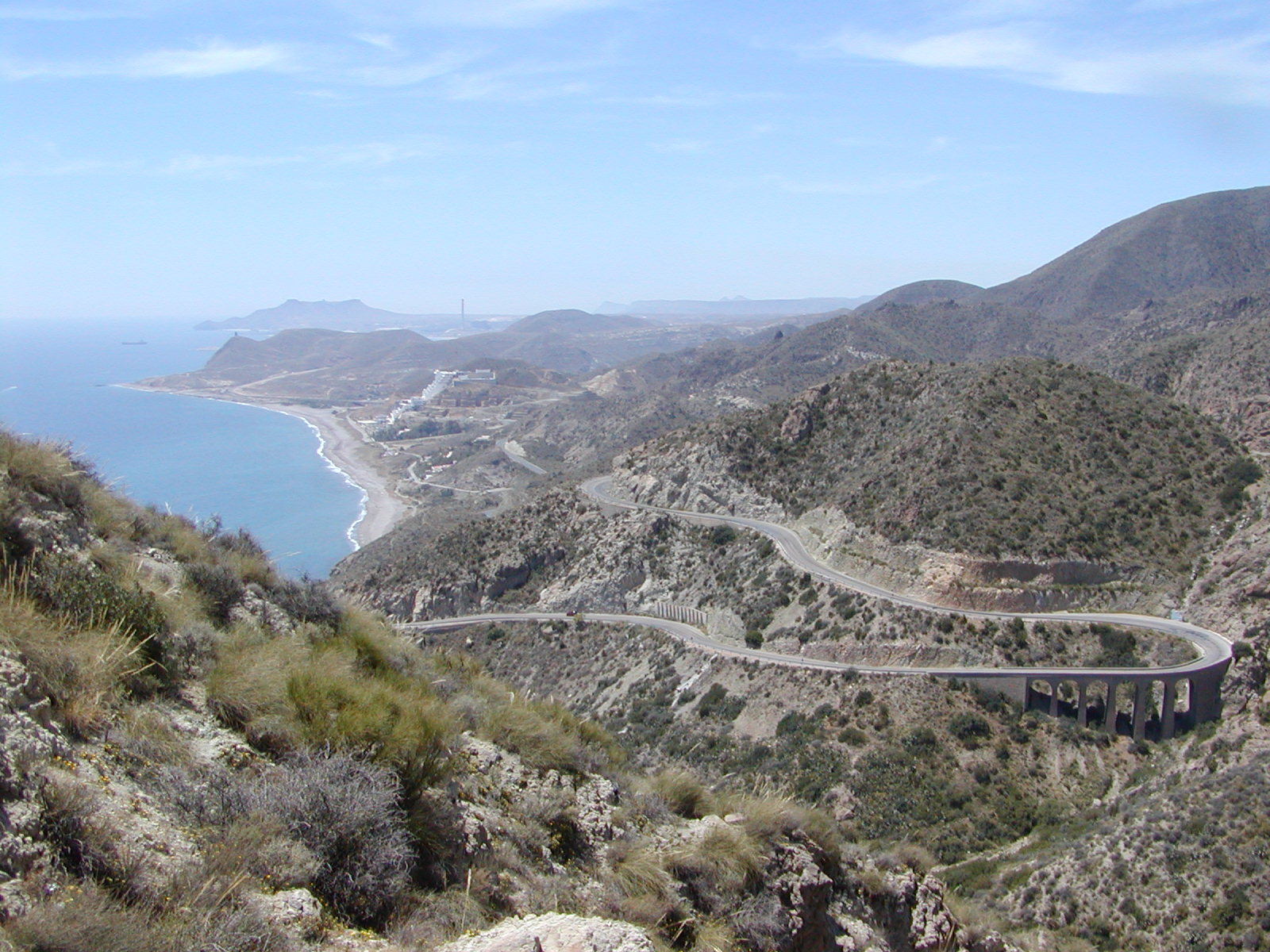 Morgens ist es immer noch recht kühl. Um 8 Uhr verlasse ich den Campingplatz, er wird gerade vor mir aufgeschlossen. Frühstück heute schon nach 5 km, aber das Brot ist von gestern, die Milch ebenfalls und daher sauer. Ich reklamiere, bekomme neue und muss trotzdem zum Schluss 5,60 Euro bezahlen. Naja, aber ohne Frühstück geht es schlecht. Die Fahrt geht heute zunächst viel am Strand entlang, in Mojacar finde ich ein Internetcafe, wo ich meine Daten problemlos hochladen kann, gratis! Ab Carbonera geht es wieder ins Landesinnere. Auf der Karte ist die einzige Möglichkeit, nach Almeria zu kommen, eine vierspurige Straße. Ich ahne Übles. Tatsächlich: Für Fahrräder gesperrt. Der Tankwart an der Tankstelle daneben sagt mir aber, dass es einen Wirtschaftsweg neben der Autobahn gibt. Den nehme ich, und es geht gut. Etwa nach 10 km macht die Autobahn einen großen Bogen nach Norden, den ich nicht mitmachen will. Es gibt eine normale Straße durch mehrere Orte, die ich nehme. Doch dann muss ich wieder auf die Autobahn. Wieder für Fahrräder gesperrt. Ich nehme wieder den Wirtschaftweg daneben. Doch der wird immer schlechter, ist nur noch ein Feldweg. Ein Off-Road-Motorradfahrer kommt vorbei. Ich frage ihn, ob dieser Weg weiter nach Almeria führt. Er bejaht, es seien noch 11 km. Das kann aber nicht stimmen. Es sind noch 21. Aber ich muss nur bis zur nächsten Ausfahrt, ab da geht eine normale Straße weiter. Doch die 4 km erweisen sich als äußerst schwierig. Es wird so steil und sandig, dass ich das Fahrrad teilweise tragen muss, und das über 30 m hoch. Aber dann komme ich doch endlich an die Stelle, wo ich wieder auf die Straße kann. Kurz vor Almeria ist wieder eine Riesenumleitung, weil in La Canada die Straße neu gemacht wird. Ich versuche es trotzdem und komme durch. Die Durchfahrt durch Almeria klappt ganz gut. Mein Ziel heute ist Aguadulce. Das sind zwar nur 130 km, aber ich muss dringend Wäsche waschen, und außerdem habe ich bisher zu wenig Schlaf bekommen. So wenig ich sonst brauche, bei solchen Tagesstrecken liegt mein Schlafbedarf bei 8 bis 10 Stunden. Der Campingplatz liegt direkt am Strand, aber baden will ich nicht. Die Dusche reicht mir, und endlich kann ich mein T-Shirt, die Radfahrhose, die Socken und das Handtuch waschen. Hoffentlich werden die Sachen bis morgen trocken. Wenn nicht, trocknet der Rest am Leib. Jedenfalls fühle ich mich ganz gut. Bis auf die Mückenstiche, die mich nur ärgern, habe ich keine Probleme. Das Fieber in Frankreich kam wohl von den Nebenhöhlen, die ja schon lange mein Problem sind. Nach der WIederaufnahme der Tour war aber alles wieder in Ordnung. Die anfänglichen vorübergehenden Probleme mit den Sehenansätzen sind schon lange wieder verschwunden. Ich fühle mich rundum wohl. Allerdings ist die Hose etwas ausgeleiert. Sie rutscht dauernd. Ich muss wohl dann die Ersatzhose anziehen. Einen Sonnenbrand habe ich mir nicht geholt. Wenn ich mich morgens mit Sonnenschutzcreme Faktor 20 eincreme, reicht das für den ganzen Tag. Malaga ist noch etwas über 200 km entfernt. Das werde ich morgen wohl nicht schaffen, zumal es sehr gebirgig ist. Aber danach ist es nicht mehr weit. Der Campingplatzbesitzer hier ist Schotte. Er sagt, ich solle auf jeden Fall die Fähre von Gibraltar nehmen, die sei billiger, und Gibraltar sei näher als Algeciras. Das letzte stimmt, das erste will ich gern glauben. |