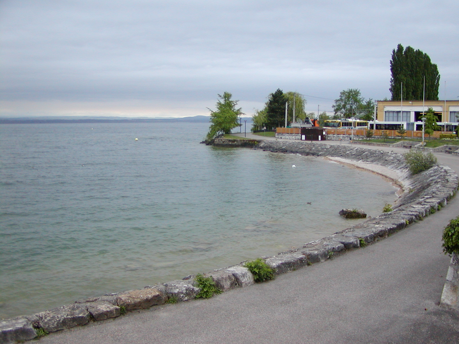 Heute morgen ist es klar, aber kalt. Noch scheint die Sonne, aber es ziehen Wolken auf. Nach einem eher kargem Frühstück fahre ich erst einmal Richtung Biel. Die Sonne wärmt doch, ich fahre in T-Shirt und kurzen Hosen, muss mich auch wie immer eincremen. Doch der Wind scheint zu drehen, er kommt immer mehr von vorne. Dazu ist es recht hügelig, ich komme nur langsam vorwärts. Das Knacken im Vorderrad ist jetzt unerträglich. Dazu macht es mahlende Geräusche. Zum Glück ist in Biel ein netter kleiner Fahrradladen. Zunächst ist nur der Lehrling da, der meint, dass sich das Lager gelockert hat. Man müsste es nur ein wenig nachziehen. Ich bitte ihn, doch auch nach den Kugeln im Kugellager zu sehen. Das tut er auch, meint aber, dass sie in Ordnung seien. Das kannte ich schon von Schweden. Doch da kam der Meister, fand mehrere defekte Kugeln mit diversen Verschleißzeichen im Lager und wechselte kurzerhand beide Kugellager aus. Er nahm dann nur 15 Euro für die ganze Reparatur. Seitdem ist das Rad wieder voll in Ordnung. Insgesamt waren aber doch fast zwei Stunden vergangen. Inzwischen kam der Wind voll von vorne, es wurde plötzlich viel kälter, nur noch 9 Grad, und zu allem Überfluss fing es an zu regnen. Zum Glück nicht viel, aber ich kam nur quälend langsam vorwärts. Die Strecke am Bieler See und am Lac du Neuchatel ist landschaftlich sehr schön, die Radwegbeschilderung aber nicht immer perfekt. Einmal muss ich 3 km zurück, weil kein Weiterkommen ist. In Yverdon am westlichen Ende des Lac du Neuchatel beschließe ich, weiter zu fahren bis Morges am Genfer See. Leider ist vorher kein Campingplatz. Es ist aber schon 18:00 h, und so weiß ich, dass ich das letzte Stück wohl mit Licht fahren muss. Dazu ist es wieder sehr hügelig, aber der Gegenwind hat nachgelassen. Endlich komme ich um 21:30 h auf dem Campingplatz in Morges an. Man weist mir einen Zeltplatz zu, und im Restaurant bekomme ich noch eine Portion Pommes Frites, ein Sandwichtoast und einen halben Liter heiße Milch. Die tut mir gut, weil ich so durchgefroren bin. Jetzt noch schnell geduscht, das Zelt aufgebaut und diesen Bericht geschrieben, dann kann ich endlich schlafen. Morgen werde ich die Schweiz verlassen und in Frankreich meine Tour die Rhone entlang beginnen. |