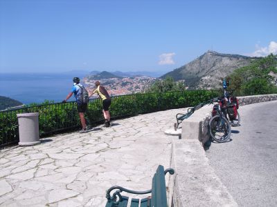 Once more a have a room with seaview and realize it on the next day. It starts with a long incline, but I'm rewarded by a wonderful view to the bay of Slano. The distance to Dubrovnik is only 30 km, but it is very hilly. A cruise liner is just entering the harbour of Dubrovnik. I have to cross an impressive bridge - and then it goes steeply uphill. Here I meet Niklas who comes from the Bodensee and wants to go to Asia by bike. It is his first bicycle trip. He has one year time. I want to visit the old town of Dubrovnik and have to go through a tunnel, then it goes downhill for a long time. Anyhow I miss the turnoff to the old town and have to climb again half of the way. The old town is full of tourists, many cars and motorcycles are parking in front of it. With my bike I don't come very far: there are only stairs. I don't want to leave my bicycle on the parking lot, not even locked. So I go on. It goes for 2 km steep uphill on a very small road which is also used by busses. Terrible. Several times I have to stop and let busses and trucks pass. Finally I get to top. There I meet to cyclists from Austria who went by plane to Catania in Italy and came by ferry to Greece. They want to return to Austria via Croatia. Only a short time later I meet two other cyclists with long distance baggage. They come from Zagreb to Montenegro for vacation. Short in front of the border to Montenegro there is another long incline. Entering the country is no problem. It is possible to take the road around the bay of Kotor. The distance is 26 km. Or you can use the ferry, that takes 10 minutes. I choose the ferry. The district from Tivat to Budva is a purely industrial area with much truck traffic. Close to Budva there is a steep incline with two lanes, but the half of the right one is covered with concrete that has fallen down from concrete transporting trucks, so this part can't be used by a bicycle. But the bus- and truckdrivers don't see this and honk at me. I'm glad when I have passed this part. At Budva I do not recognize anything. We have been here more than 30 years ago in Becici, two km further. At a gas station they explain the way to the campground to me, the distance is only 200 m. I set up my tent, but I don't like to take a shower here. It is horribly dirty and there seems to be no warm water. At the gas station I have free Internet. Here I'm sitting now and writing my report. I order a cappuccino, but there is no milk. Then I take a coffee. When I want to pay, the very kind young women doesn't want the money because she couldn't fulfill my primary wish. I have no words. Tomorrow I will enter Albania. I don't know whether they have internet or not. So it may be that the next report will be delayed by a few days. But it will surely come. |