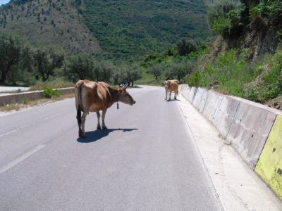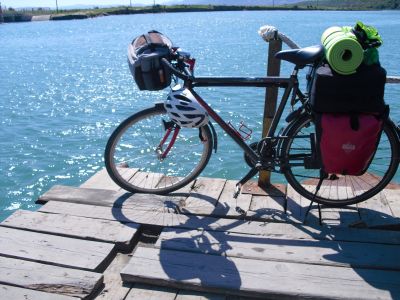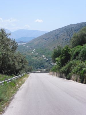 Breakfast is not offered in the "hotel". The owner takes me to a small shop and translates for me. I buy some bread, butter and marmelade and take it back to the hotel, where I now have breakfast. Then I start. The weather is good: no cloud in the sky! But the 54 km to Sarande seem to be terrible because again and again I have to climb heavily. I guess that I use the first gear 95% of the time. The problem is that I don't know how long it will be like this. The map doesn't tell anything about it. Often it goes about 400 m uphill and then fast downhill. But 10 km in front of Sarande it goes continuously downhill. What a pleasure! Sarande is a big city in which a lot of construction is taking place like in all Albania. The beach promenade is beautiful. Here I take a short break. After this I go on to Greece. The road is narrow again. I have to take a ferry to cross a small channel. This is somewhat adventurous because I have to put the bike at the very corner of the ferry deck where I hold onto it for almost the whole ride. But it takes only 10 minutes. There is no sign to Greece. The blacktop turns into gravel, and I ask myself whether I am still on the right road. I am. Finally I arrive at the Greek border, but before I have to leave Albania first. The officer doesn't let me pass. He doesn't seem to realize where I entered Albania. Again and again he asks me from where in Greece I entered Albania. He can't imagine that I crossed the whole country by bike. I have to explain several times that I came through Montenegro and entered Albania at that border. Finally he lets me pass. Also the Greek coast is very beautiful. But not the signage of the roads. I want to go through Kestrini, follow the only sign but come to Pagio where I didn't want to go. This is not a big detour, but it bothers me. In Igoumenitsa there is no hint for the campground either. I rely on the map and find the campground after 4 km along the coast knowing that I have to return this way tomorrow. But the campground is closed. I see some workers on the site. An older man notices me. He seems to be the owner - and speaks German! He tells me that the place was closed for some years and is now beeing reconstructed and not yet open. But I may stay and use the toilet and washroom. About 500 m away is a restaurant where I can eat and upload the report. Now I'm looking forward for my sleeping bag. |