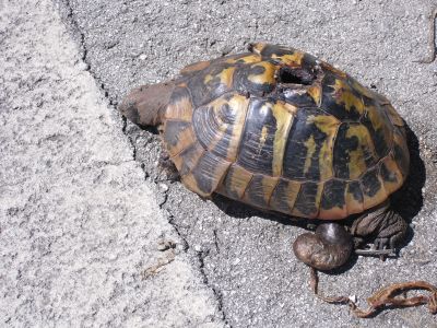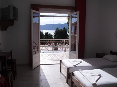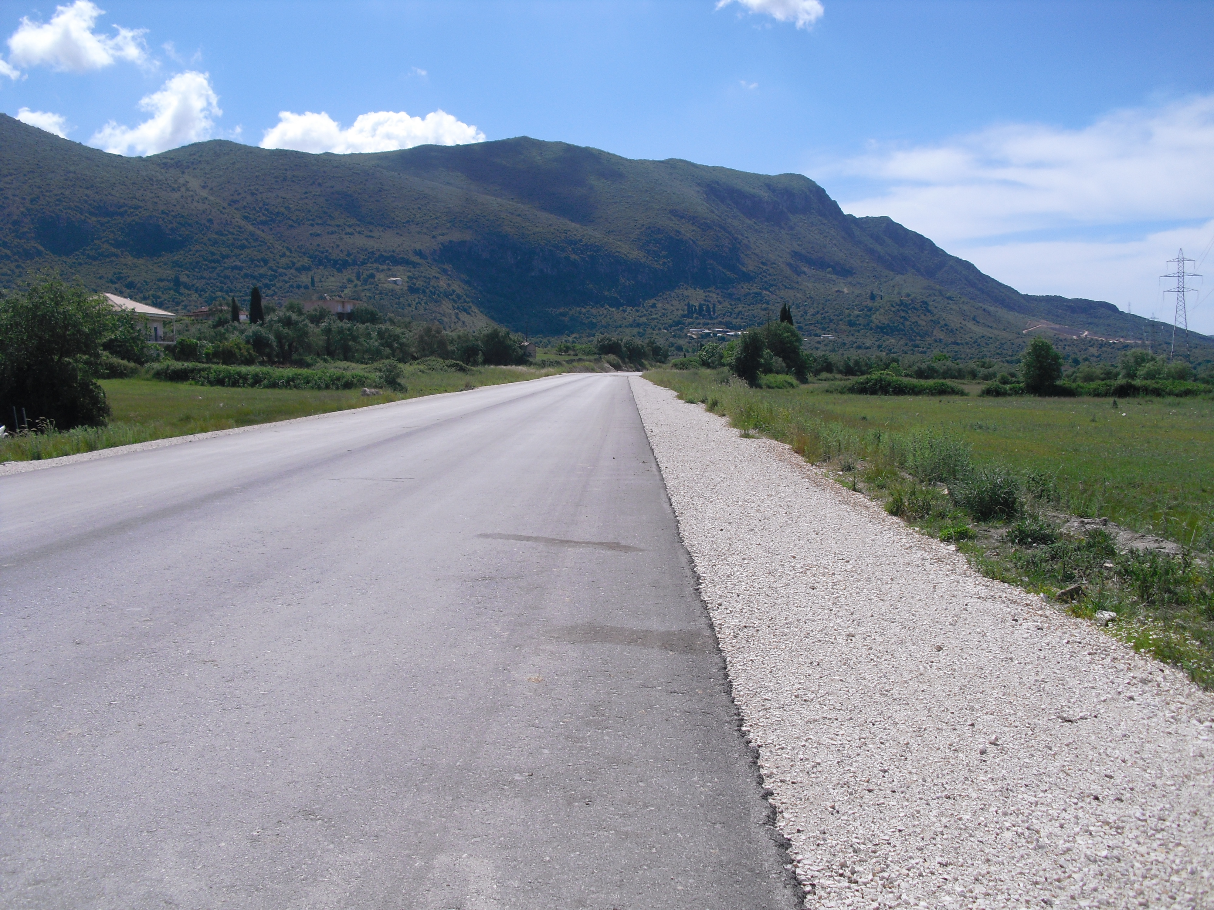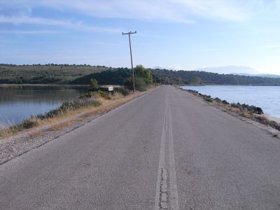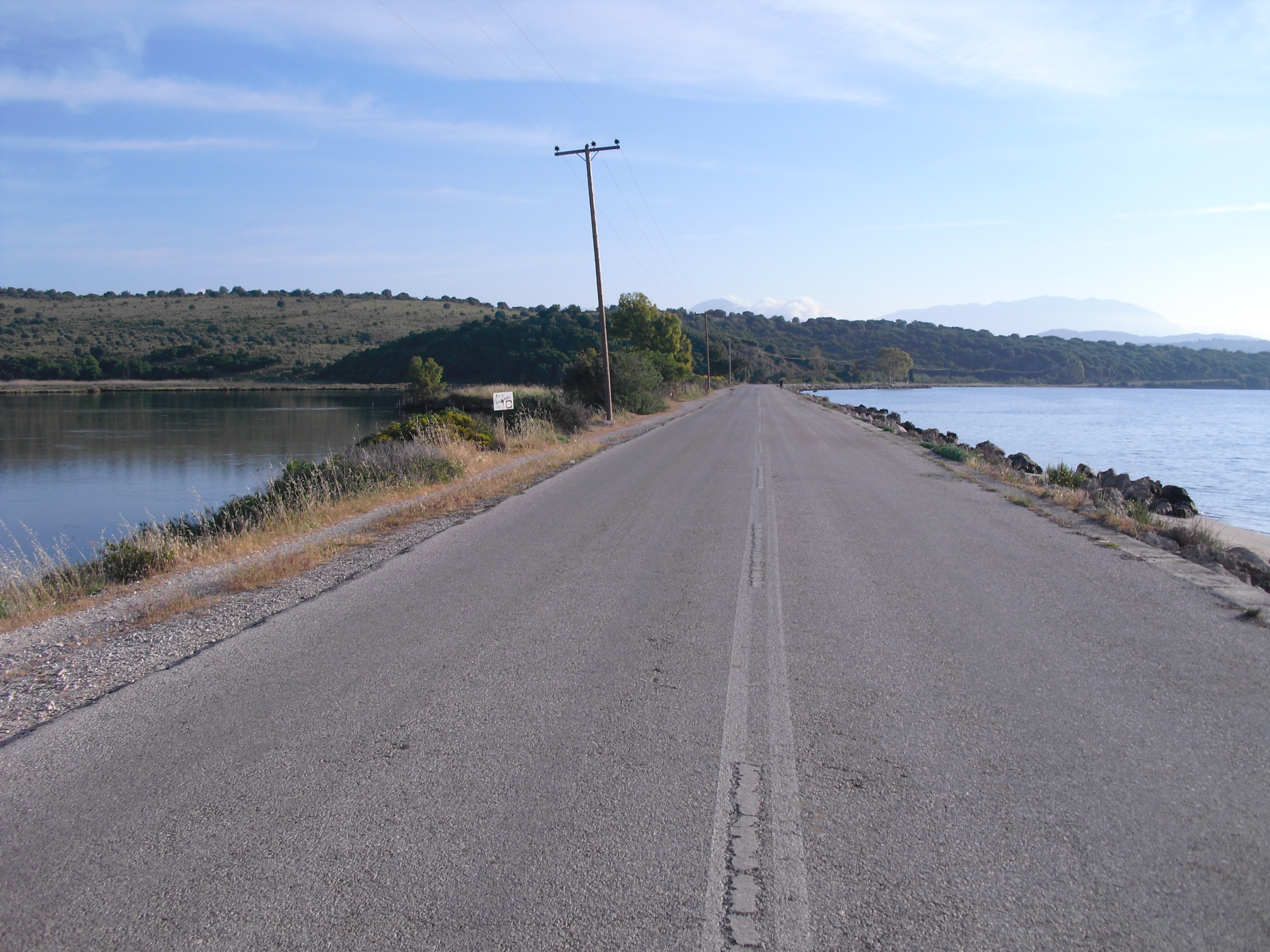 I have to adjust my watch. Greece is GMT plus 2 hours. So I get up at 7 am (6 am German time) and want to wash and brush my teeth, but there is no water today. So I pack up my things and go back to Igoumenitsa again. At the harbor I get "breakfast" (Cappuccino, Omelette and Sandwich for 9.80 Euro!) and go on partially through the interior to Prevesa. Like in Albania here are many waste dumps. All sides of the road are full of plastic bottles and other things. On the whole way there are no 5 m without garbage. Nevertheless the country is beautiful. Again and again there are idyllic views of the Ionian coast. Often miniature churches on pillars can be seen. I think that these are memorials of traffic victims. When I consider how many of these buildings I have seen there must be plenty of them. Also I found memorials in Croatia, Montenegro and Albania, some very fancy, but no miniature churches. There are several road construction zones. The new road is built beside the old one. I stay on the new road. There is no traffic except for some trucks. From time to time there are still road works. One time I fear that it is not possible to pass it, but with pushing the bike 10 m I am able to do it. I don't like the alternative to go with the main traffic some hundred m altitude down to the beach (and then up again). In Prevesa is a tunnel with a length of 1600 m which goes under the sea to the other side. Of course bicycles are not permitted. I go to the harbour to find a ferry, but there is none. In one of the numerous cafes I ask a guest how I can get to the other side. He puts on a big smile. He still possesses nearly half of his teeth and explains in English that I should go to the entry of the tunnel. A bus would come and take me through the tunnel. Doubtfully I return to the place where the sign "Not permitted for bicycles" is posted. No bus comes, but after a while a taxi. I stop it, and the driver says I should proceed to the entry. He would inform a pickup. I do so. And in fact after a short time a pickup comes and takes me through the tunnel. The driver refuses to take any fare or tip. I'm glad that it worked. But a small hint beside the road would have been very helpful... I keep going on via Vonitsa to Paleros. The map shows this road in red, therefore it must be a major road. In fact the road is very narrow and there's almost no traffic. The map says that in Paleros should be a campground, but I see no hint or sign to it. I continue and find a hotel that looks nice. Because it is cheap and the way to the campground leads back as they say and I urgently need a hot shower I decide to stay here. Here I can wash my clothes get a good dinner and can upload my report. Also a breakfast is served in the morning. My tomorrow destination is Platani, the house of a Greek friend. Whether I can make the 140 km is not yet clear. I guess that there is a very hilly road again. |