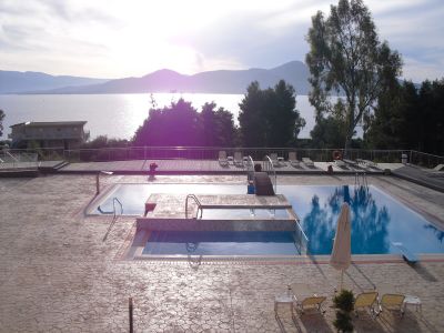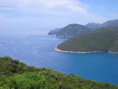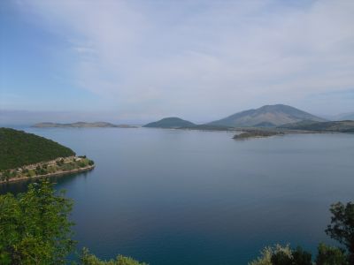 | The entry to the harbor of Igoumenitsa from the south. The campground is located on the small peninsula on the right |