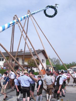 I get a small breakfast at the kiosk at the campground. Then it goes permanently up- and downhill to Mühldorf/Inn. These ascents are a good practice for the following mountain passes. Today the sun is shining. At first it is still cold, I have to wear jacket and long trousers. But after one hour I can take off the jacket, and after two hours also the long trousers. So it is more fun while biking. I continue via Altötting and Kastl. Here a wind orchestra comes the way which is very good. Today is the 1st of May. Everywhere it is celebrated. So also in Kirchberg after Tittmoning. I can barely pass by pushing my bike. This region is simply beautiful; everywhere the dandelion is blooming an on the fields is new green. In the sunshine and with summerly temperature I can enjoy the trip much more than in the cold rain. Today's destination is Freilassing, where the Stoltz family welcomes me heartily. I can dry my tent and my sleeping-bag. Even my clothes are washed, which is urgently necessary. We haven't see us for a long time; I enjoy the good conversation very much. If the weather permits it I will make the Tauern-pass tomorrow. However there are now clouds and I see lightnings and hear thunder. |