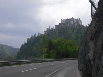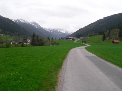 Christel and Emmanuel heartily say goodbye to me. The weather forecast is for light rain in the afternoon. After a short time I enter the rush hour traffic at Salzburg, but there are bike lanes everywhere. I follow the Salzach river a long time and pass the castle of Hohensalzburg. It is dry and not too cold. The strong tailwind helps me to go on. At Bischofshofen I have to leave the Salzach river, now it goes non stop uphill. Additionally it begins to rain. I try to drive with the wind jacket , but I get too hot so I have to take it off even though Ill get wet. But at this point it is only light rain. Radstadt seems to be very quiet, all Cafes are empty. I find an open one and enjoy some icecream. Then I go on to Untertauern. The Tauern bike trail is recommended, so I take it. It has a lot of scenic variety but the ride is exhausting. Partially it is gravel, sometimes I have to cross small ditches, always along the roaring river Taurach. It is so loud that after a while I almost wish to have stayed on the main road. The rain increases, the temperature decreases. Now there are 11 km to the highest point, the Tauernpasshöhe. I had planned to take a break every km. This doesn't work because I immediately get cold when I stop. So I have a short break after 6 km for drinking something and eating a piece of chocolate. The miles seem to be very long. My speed is only 3.8 km/h because it is so steep. But I don't get off and push the bike. In spite of heavy muscle work I get cold and am looking forward to drinking a hot tee at the Hotel Wagner at the highest point. There is still a lot of snow, temperature 5°C (41°F), heavy rain. All cafes and hotels are closed. I have never seen Obertauern so bleak. I quickly put on two jackets, gloves and headband. Now it goes down to Tweng with very high speed. I don't want to sleep in my tent tonight. The next campground is in Mauterndorf, 10 km away. I find a small hotel in Tweng where I can take a hot shower and get something to eat: goulash soup with bread. There is nothing else. But I become full, I am warm and dry. What more do I want? |