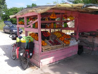 Als ich mich zum Schlafen legen will, stelle ich fest, dass drei Wiener ihr Zelt direkt neben meinem aufgeschlagen haben, obwohl es ca. 50 freie Plätze gab. Ich grüße sie freundlich und sage, dass ich mit dem Fahrrad nach Griechenland fahre. Sie zeigen sich interessiert. Aber sie reden ununterbrochen vor dem Zelt. Einer hat eine sehr laute Stimme und lacht oft laut. Ich kann nicht schlafen. Um 0:30 Uhr bitte ich sie höflich, etwas leiser zu sein. Darauf meinen sie, ich solle froh sein, dass sie keine Musik angemacht haben. Sehr rücksichtsvoll! Frühstück gibt es nicht, ich packe mein Zelt und mein Gepäck ein (die Wiener schlafen jetzt) und fahre los. In Makarska finde ich ein Cafe mit kostenlosem Internetzugang und lade den Bericht und die Bilder hoch. Währenddessen kommt ein anderer Fernradfahrer (erkenntlich am Gepäck). Er ist auch Arzt (Radiologe), aber schon in Rente. Er fährt von Berlin nach Instanbul und ist auch seit 2 Wochen unterwegs. Er schläft allerdings im Zelt irgendwo in der Gegend. Das ist mir zu gefährlich. Auf der heutigen Strecke kann man keinen Rekord aufstellen. Es geht ständig auf und ab, aber nach jeder Kurve ergibt sich eine neue schöne Aussicht. Das Wetter ist hervorragend, 24 °C und meistens Sonnenschein. So macht das Fahrradfahren richtig Spaß. Für ca. 9 km muss ich durch Bosnien/Herzegowina. Die Grenzbeamten sind nett und winken mich so durch. Bis Dubrovnik schaffe ich es heute nicht mehr. Ich will in Slano auf den Campingplatz. Es gibt zwar Schilder, die auf mehrere Campingplätze hinweisen, die Plätze selbst scheint es aber nicht zu geben. Die Leute schicken mich in verschiedene Richtungen, aber einen Campingplatz finde ich nicht. Entnervt nehme ich ein Zimmer in Slano. Mit 25 Euro einschließlich Frühstück ist es nicht teurer, aber viel bequemer. Dubrovnik ist noch ca. 30 km entfernt. Ich bin mal gespannt. |