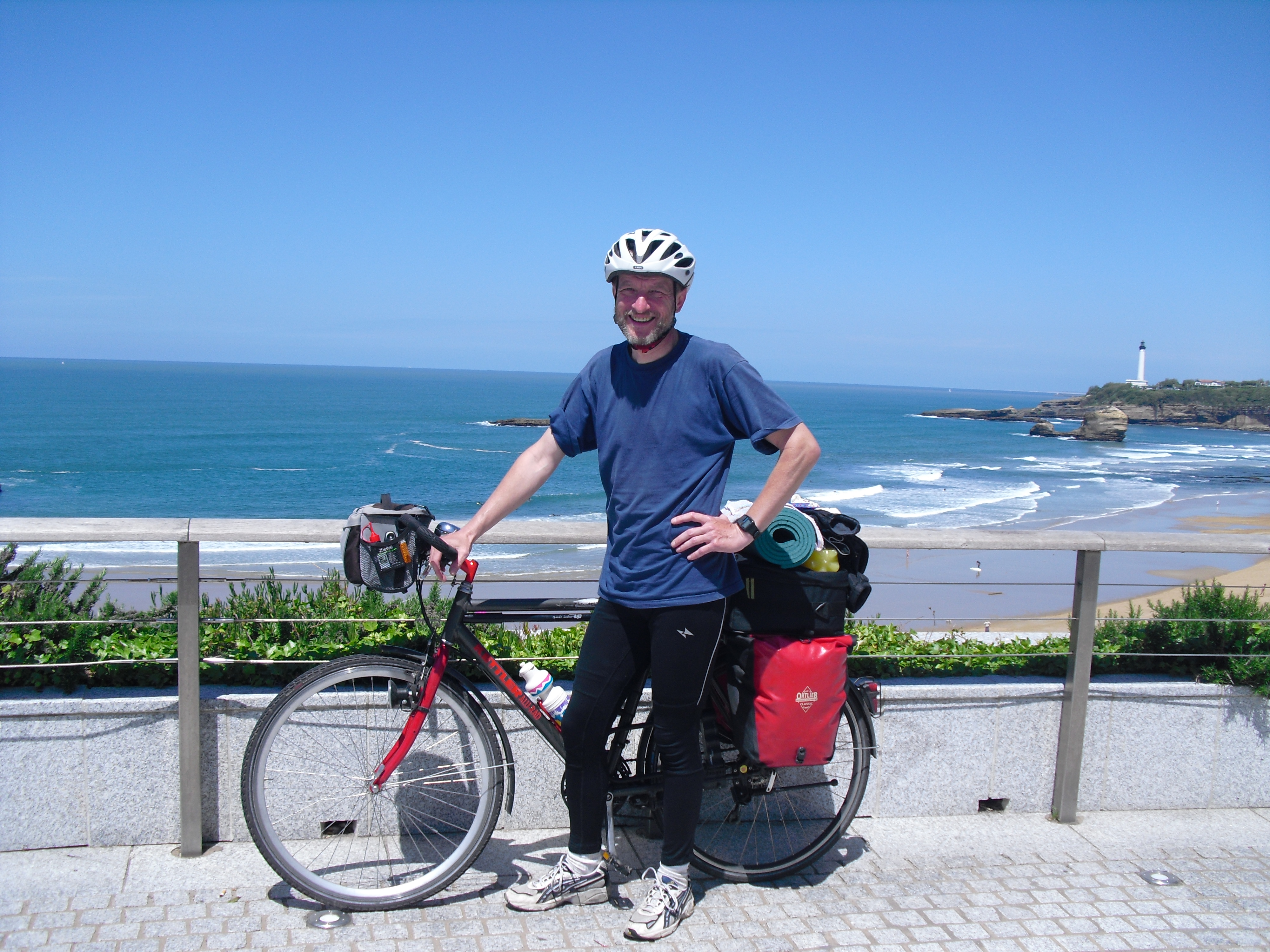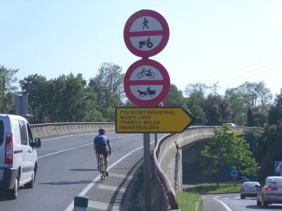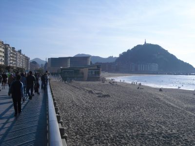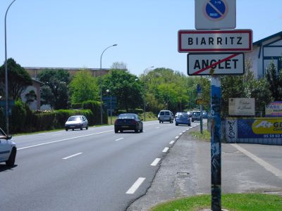 Heute habe ich meinen Gammeltag. Ich kann erst um 8:30 h bezahlen und meinen Pass abholen. Dann frage ich nach McDonald's und folge dem beschriebenen Weg. Der führt mich aber nach St. Paul de Dax, die Nachbarstadt von Dax, ähnlich wie in Minneapolis, nur zwei Größenordnungen kleiner (die Zwillingsstadt von Minneapolis heißt auch St. Paul, soweit ich weiß). Anders als dort ist hier McDo schwierig zu finden, und als ich endlich da bin (Umweg 5 km), haben sie noch geschlossen. Internetzugang geht auch noch nicht. Also fahre ich weiter nach Bayonne. Auf dem Weg dorthin gibt es auch McDo, und ich halte mich lange dort auf. Die Sonne scheint schön warm, aber der Wind ist kalt, so fahre ich weiter mit langer Hose und vormittags auch mit Jacke. Die kann ich am Nachmittag ausziehen. In Biarritz erkenne ich fast nichts wieder. Nur den Strand, an dem ich vor 30 Jahren zurückgepfiffen wurde, weil ich an der falschen Stelle ins Meer gelaufen war, meine ich wiederzuerkennen. Ich setze mich in ein Cafe über dem Strand. Der Cafe au lait kostet 4 Euro, so viel habe ich noch nie dafür bezahlt. Ich lerne ein nettes Ehepaar aus Perth in Australien kennen, die meinen, ich müsste unbedingt auch mal in Australien Fahrrad fahren. Bei den Preisen wage ich gar nicht daran zu denken, hier auf einen Campingplatz zu gehen. So fahre ich weiter, den letzten Rest der französischen Küste entlang, und befinde mich unversehens in Spanien. Das "Espana"-Schild habe ich nicht fotografiert, es war von Graffitti-Schmierfinken völlig verunstaltet. Der Verkehr in Spanien ist katastrophal. Die Beschilderung ist ausgesprochen schlecht. Plötzlich wird die N1, die ich nehmen muss, zur Kraftverkehrsstraße, also für Fahrräder gesperrt. Eine Alternative ist , wie ich das von Spanien gut kenne, natürlich nicht ausgeschildert. Ich frage 3 Leute und bekomme 5 verschiedene Antworten. Keine passt. Da sehe ich eine Gruppe Rennradfahrer, die gerade einen Reifen flicken. Die frage ich, und spontan fahren zwei von ihnen mir voraus. Allein hätte ich den Weg wohl nie gefunden. San Sebastian ist ein einziges Gewusel von Leuten, sowohl am Strand als auch in der Stadt. Baustellen, Umleitungen, Lärm, enger Verkehr, Gestank. Endlich sehe ich ein Schild zum Campingplatz: 4 km. Es sind aber 6 km, und es geht die ganze Zeit bergauf. Zum Glück hat der Campingplatz noch auf, als ich komme. Die Dusche tut gut, im Restaurant bekomme ich noch etwas zu essen. Wie weit ich morgen komme, weiß ich beim besten Willen noch nicht. Ich muss damit rechnen, große Umwege zu fahren, weil ich die Kraftverkehrsstraßen nicht benutzen kann und will. Wenn ich aber einmal von der Küste weg bin, wird es bestimmt einfacher. |