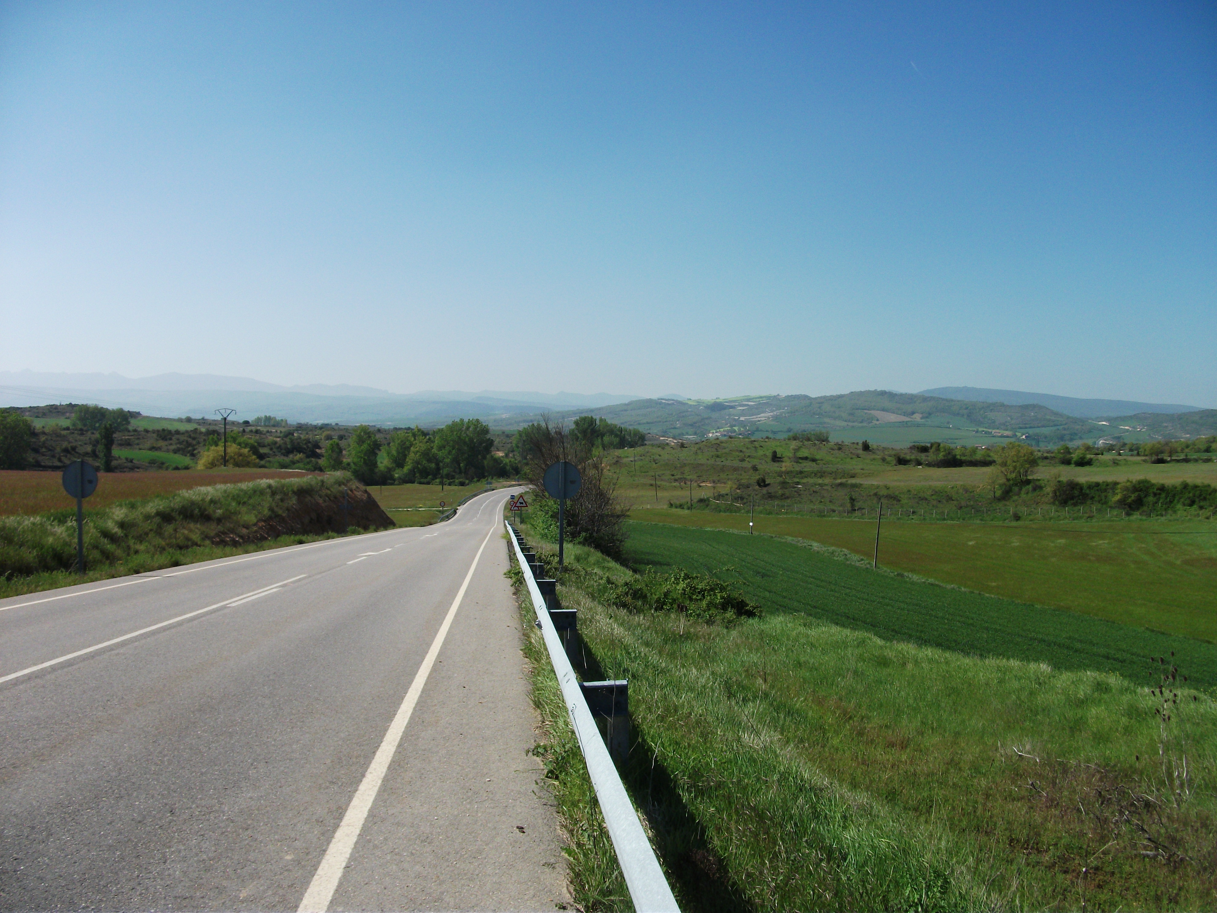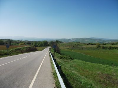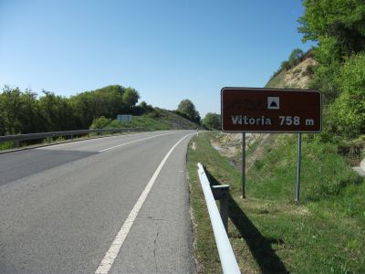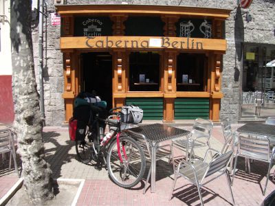 Im Hotel habe ich gut geschlafen. Der Schlafsack ist auch wieder trocken. Mit der Dame von der Rezeption, die sehr gut englisch spricht, unterhalte ich mich lange. Sie sagt, dass es vor drei Tagen noch Frost gegeben hat und vor einer Woche noch Schnee gelegen hat. Nach einem guten Frühstück fahre ich los. So einen Tag liebe ich! Nur Sonne, keine Wolken. Zwar morgens noch etwas kühl, aber die Jacke kann ich bald ausziehen. Ein kräftiger Rückenwind hilft mir gut voran. Der Pass kurz nach Vitoria, vor dem ich gewarnt wurde, stellt sich als harmlos heraus. Das Hinunterfahren macht großen Spaß; die Straße ist breit und gut. Praktisch kein Verkehr, weil ich eine Nebenstraße gewählt habe (wählen konnte). In Miranda trinke ich in der Taverne "Berlin" einen Cafe con leche (Kaffee mit Milch) und genieße draußen die Wärme der Sonne. Im Tourismusbüro erklärt man mir den Weg zur N 1, aber ich verfahre mich und folge einer gerade im Bau befindlichen Straße, die anfänglich noch in die richtige Richtung geht. Aber nach 5 km kommt mir die Sache spanisch vor, und ein Blick auf die Karte sagt mir: total verkehrt. Ich muss den ganzen Weg wieder zurück, so dass ich 10 km umsonst gefahren bin. Macht nichts. Das nächste Mal passe ich besser auf ?! Dann hat mich die N 1 wieder. Zum Glück hat sie überall einen breiten Seitenstreifen, der auch gut befahrbar ist. Doch der Verkehr nervt. Auf 10 Lastwagen kommt 1 PKW. Klar, hier kommen sie fast genauso schnell vorwärts wie auf der parallel laufenden, aber mautpflichtigen Autobahn. Nach mehreren Stunden höre ich gar nicht mehr hin. Ich treffe hier zum ersten Mal auf dieser Tour zwei Fernradfahrer, die auch mit Zelt und Schlafsack unterwegs sind. Sie kommen aus Nantes in Nordfrankreich (auf der Übersichtskarte eingezeichnet) und freuen sich wie ich über die Sonne in Spanien. Sie haben, als wir uns treffen, gerade die 1000-km-Marke überschritten. In Burgos ist der Campingplatz nicht ausgeschildert. Ich weiß zwar ungefähr, wo er liegt, frage aber zwei mir entgegenkommende Radfahrer, von denen einer englisch spricht. Sie sagen, sie würden sowieso nur spazieren fahren, und fahren mir voraus. Diesen Weg hätte ich alleine nie gefunden. Es geht über eine kleine Fußgängerbrücke und durch einen Wald, und plötzlich sind wir da. Ich baue mein Zelt auf und gehe erst einmal essen (Paella und gedünsteten Fisch, sehr lecker). Zweimal bestelle ich Brot nach. Parallel dazu schreibe ich diesen Bericht. Morgen geht es Richtung Valladolid, mal sehen, bis zu welchem Campingplatz ich komme. |