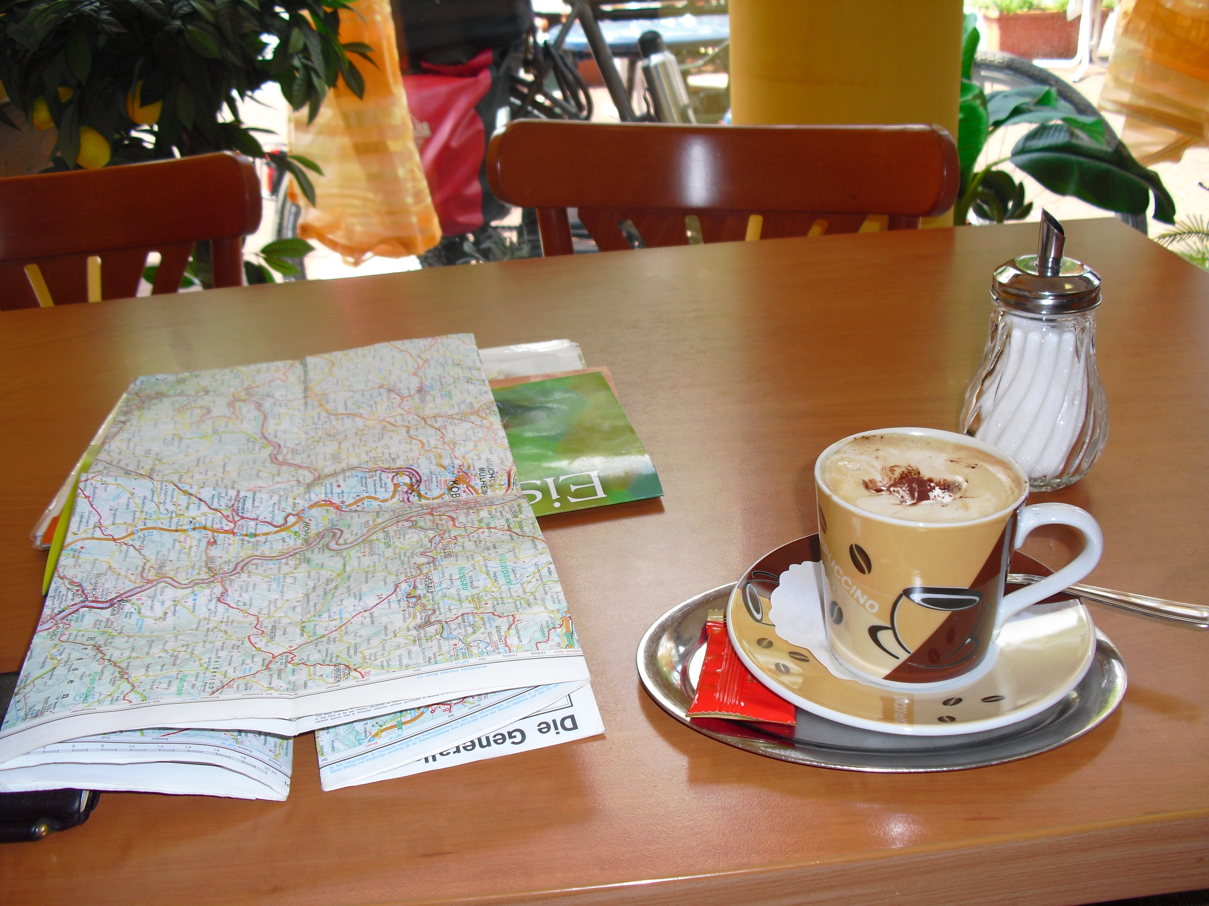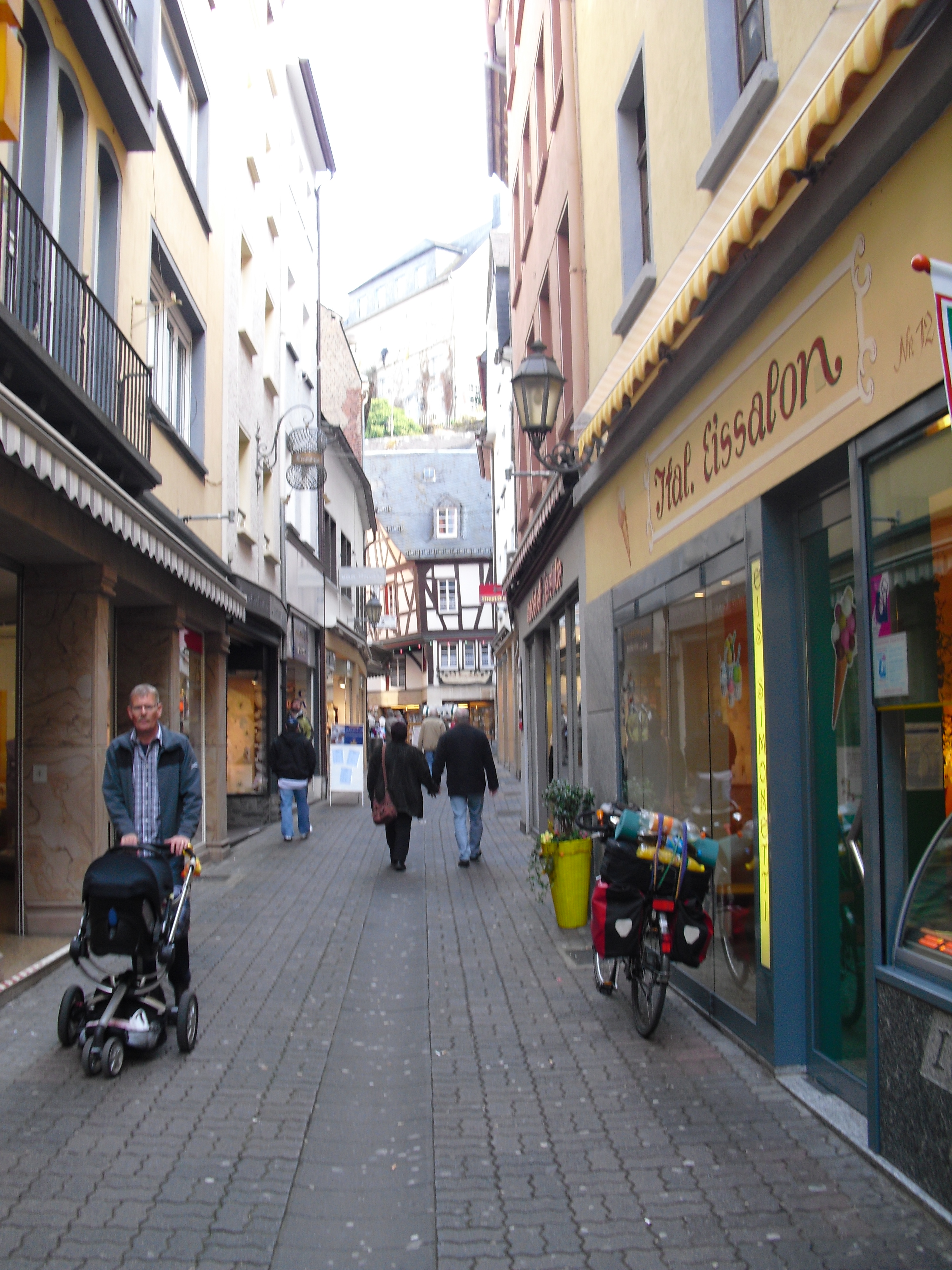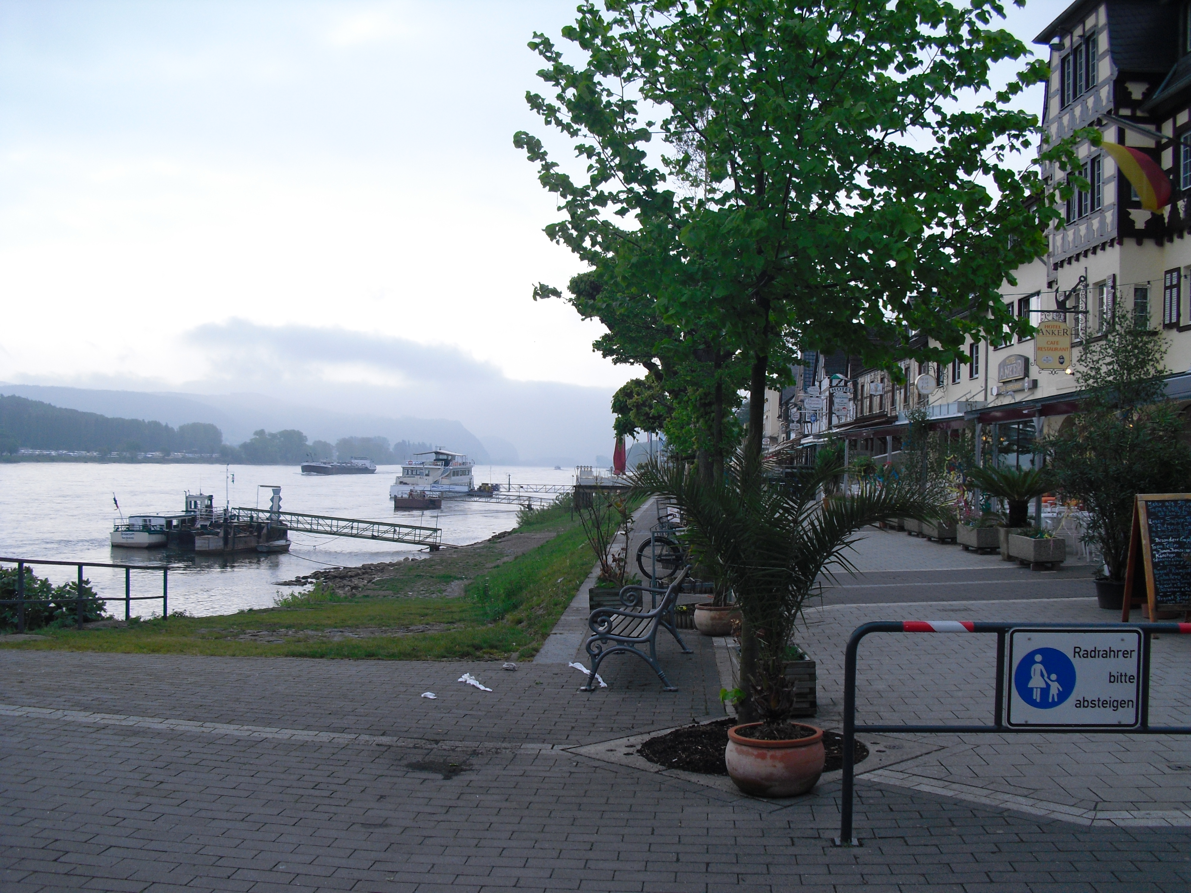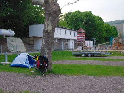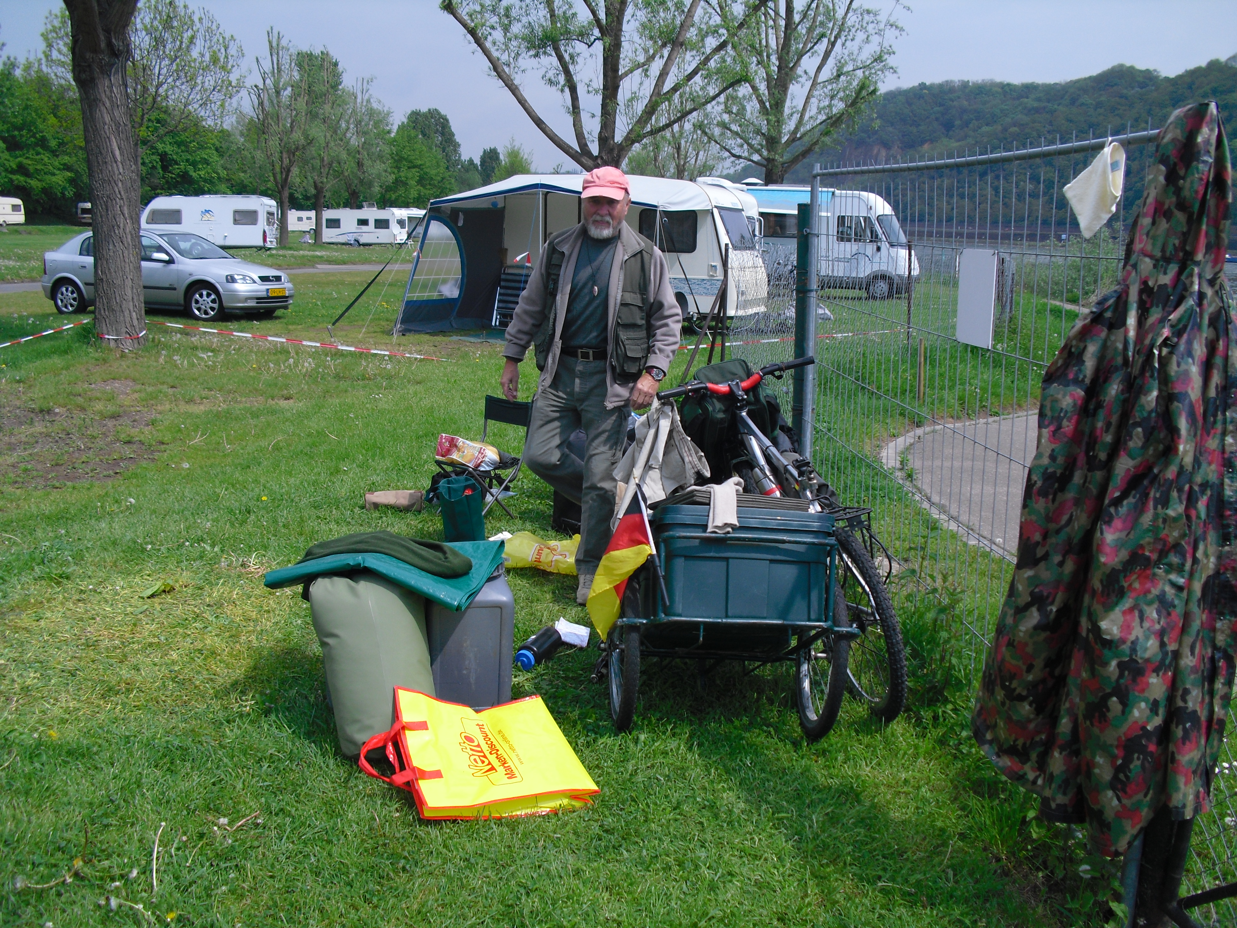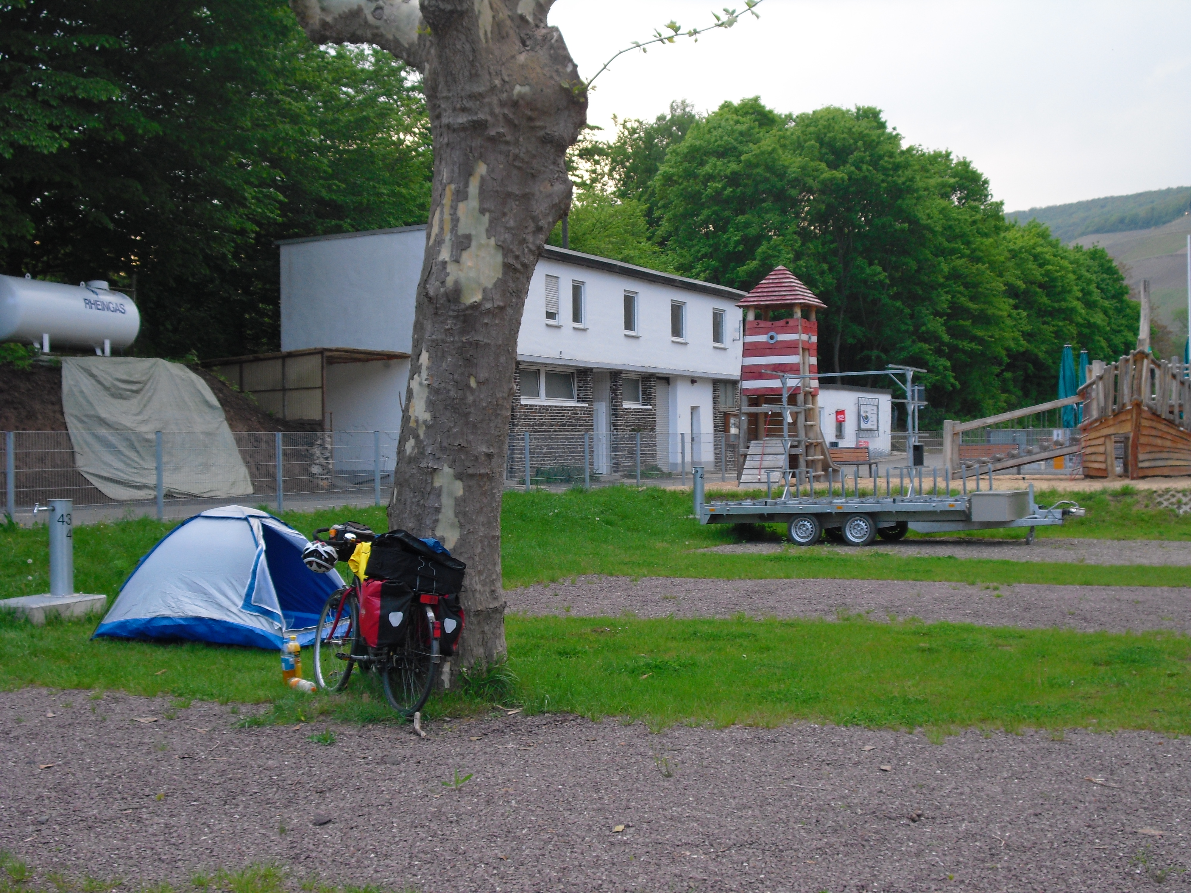 Die Nacht war wirklich kalt. Immer noch weit unter 10 Grad. Da fällt das Aufstehen schwer, was sonst nicht mein Fall ist. Also um 7 Uhr noch einmal umgedreht. Langsam fertiggemacht und losgefahren. Immer noch bewölkt, aber zum Glück kein Regen mehr. Wegen der Kälte fahre ich trotzdem mit zwei Jacken, Stirnband und Handschuhen. Ist nur schwierig, dann noch den Helm aufzustzen, aber geht. Ach ja: ich fahre jetzt mit Helm. Habe mich überzeugen lassen, dass das besser ist. In Bad Breisig nach 10 km frühstücke ich ausgiebigst im Hotel Anker. So heißt hier etwa jedes zweite Hotel. Ich verwende viel Zeit darauf. Heute will ich nicht so weit fahren wie gestern. Die Muskeln, Sehnenansätze und Gelenke müssen sich erst wieder an die Belastung gewöhnen. So klüngele ich ein bisschen. Ein Cappuccino in Koblenz schmeckt köstlich, ich lerne nette Leute kennen. Auch in Koblenz treffe ich German Willy. Wenn ich ihn richtig verstanden habe, ist er zu Fuß mit einem fahrradähnlichen Teil (aber ohne Sattel) mit 120 kg Gepäck unterwegs vom Iran zum Skagerrak. Netter Kerl, 71 Jahre alt. Dann die Mosel entlang. Gefällt mir viel besser als der Rhein. Vor allem die Radwege sind sehr viel besser, lange nicht so viele Wurzeln und Schlaglöcher. Das Stirnband und die Handschuhe brauche ich nicht mehr, die zweite Jacke lasse ich aber an. Wenn die Sonne hinter Wolken verschwindet, wird es schlagartig kalt. Die (Regen-)Jacke führt natürlich dazu, dass ich darunter viel schwitze. Das T-Shirt ist nass, und wenn ich nicht fahre, werde ich wieder ganz schnell kalt. Ich freue mich schon sehr auf wärmeres Wetter. In Zell gibt es einen schönen Campingplatz direkt an der Mosel. Hier schlage ich mein Zelt auf und dusche erstmal ausgiebig. Danach fühle ich mich viel besser. Im Augenblick zeigt das Thermometer 8 Grad. Auch heute freue ich mich wieder auf meinen Schlafsack. Wenn alles gut geht, werde ich wohl morgen schon in Frankreich sein. Bin mal gespannt. |