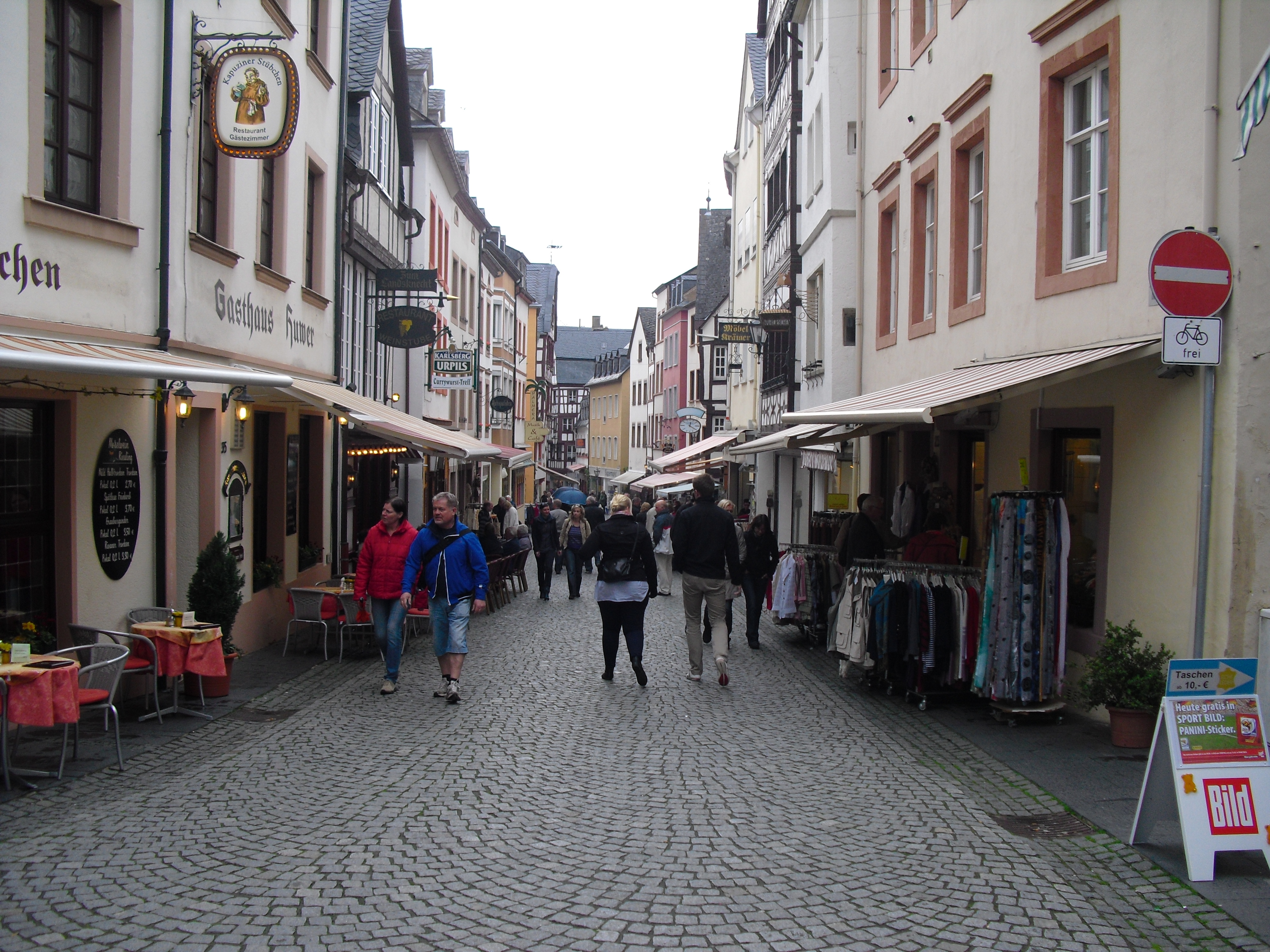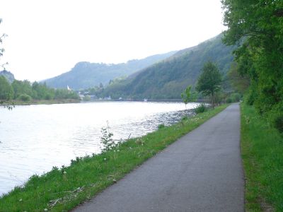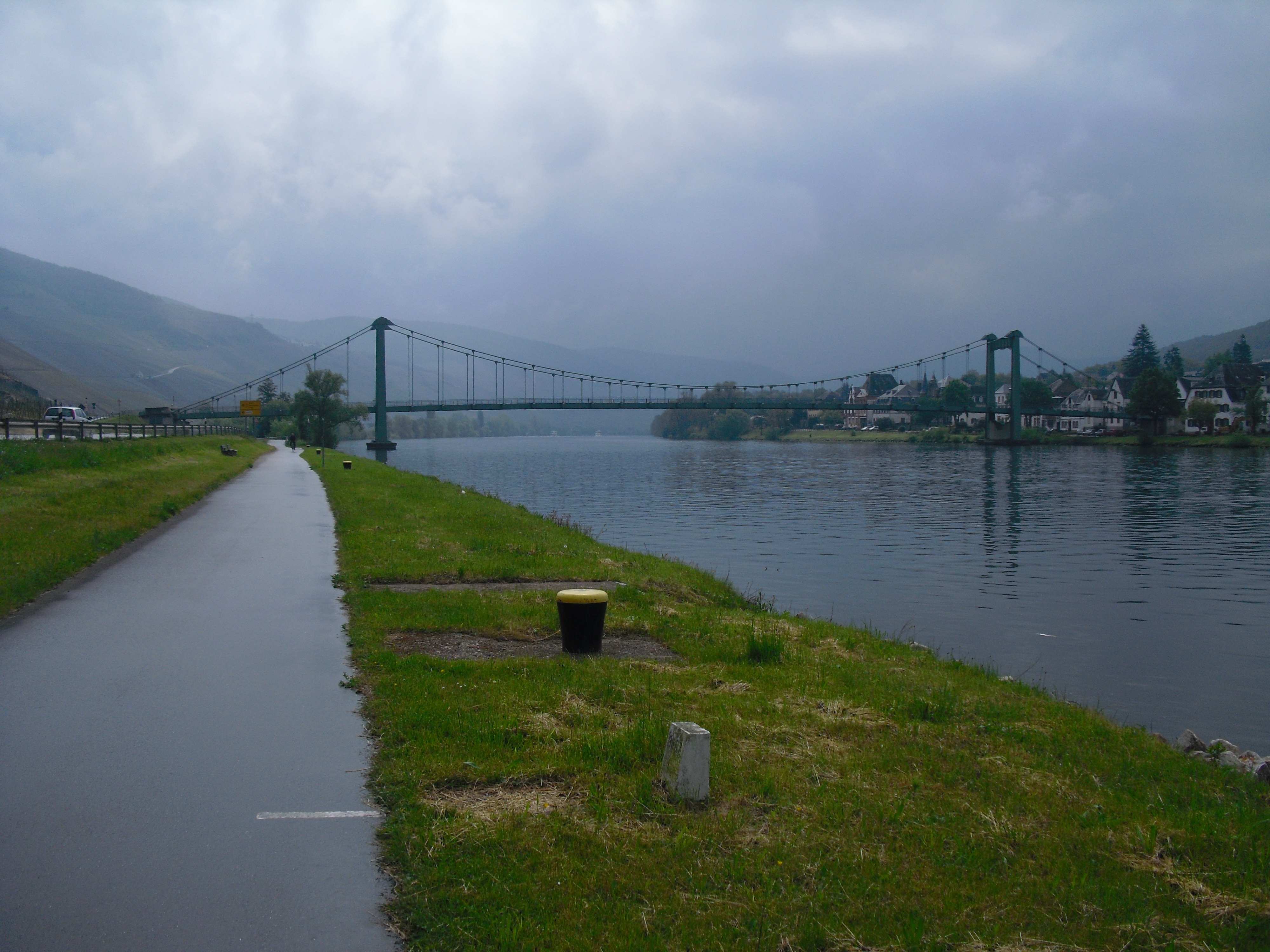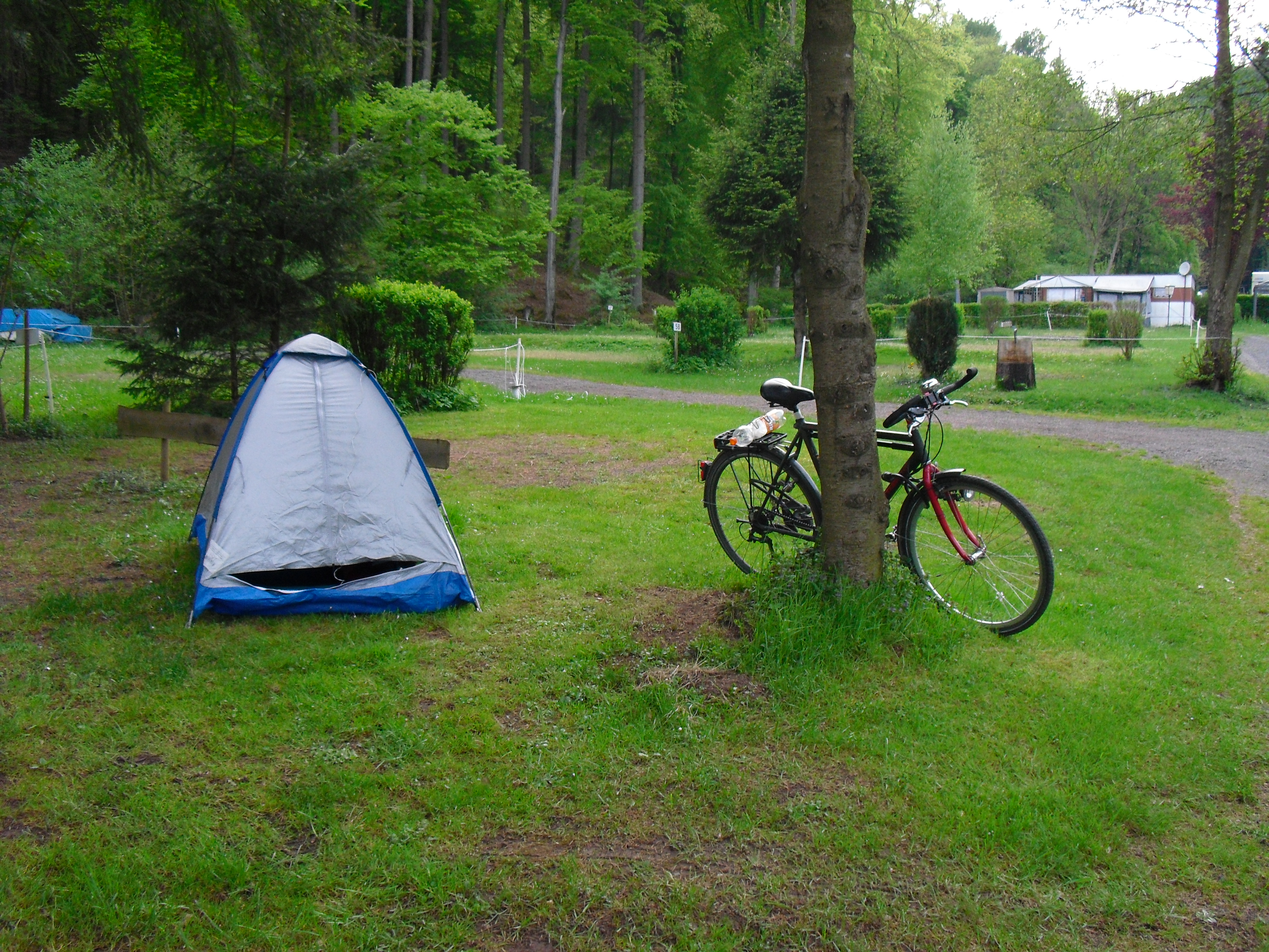 Da war ich wohl etwas zu optimistisch. Nach Frankreich bin ich heute noch nicht gekommen, es wären noch 16 km gewesen. Doch von vorne: Heute nacht ging die Temperatur wieder auf 5 Grad herunter. Ich musste mir um 3 h nachts noch einige Sachen überziehen, weil ich vor Kälte nicht schlafen konnte. Dazu feierten irgendwelche Leute im Wohnmobil die halbe Nacht ein lautstarkes Fest. Geweckt wurde ich vom Regen. Doch es half nichts: dann wird eben das nasse Zelt eingepackt. Frühstück in Zell selbst, dann eine weitere Regentour über Traben-Trarbach, Bernkastel, Schweich und Trier, immer an der Mosel entlang. Ab Schweich kommt die Sonne heraus. Hier ist eine Festlichkeit mit vielen Ständen. Ich komme fast einen km nicht voran, alles voller Leute. In Trier gönne ich mir erstmal ein Eis und fahre dann weiter bis Konz, von wo ab ich der Saar folge. Der Radweg an der Saar ist wirklich schön, es macht Spaß. Doch der Regen hat mich aufgehalten; ich schaffe nicht mehr als 134 km. Doch die heiße Dusche auf dem Campingplatz Waldfrieden in Saarburg entschädigt mich etwas. Vielleicht ist das Wetter morgen besser. |