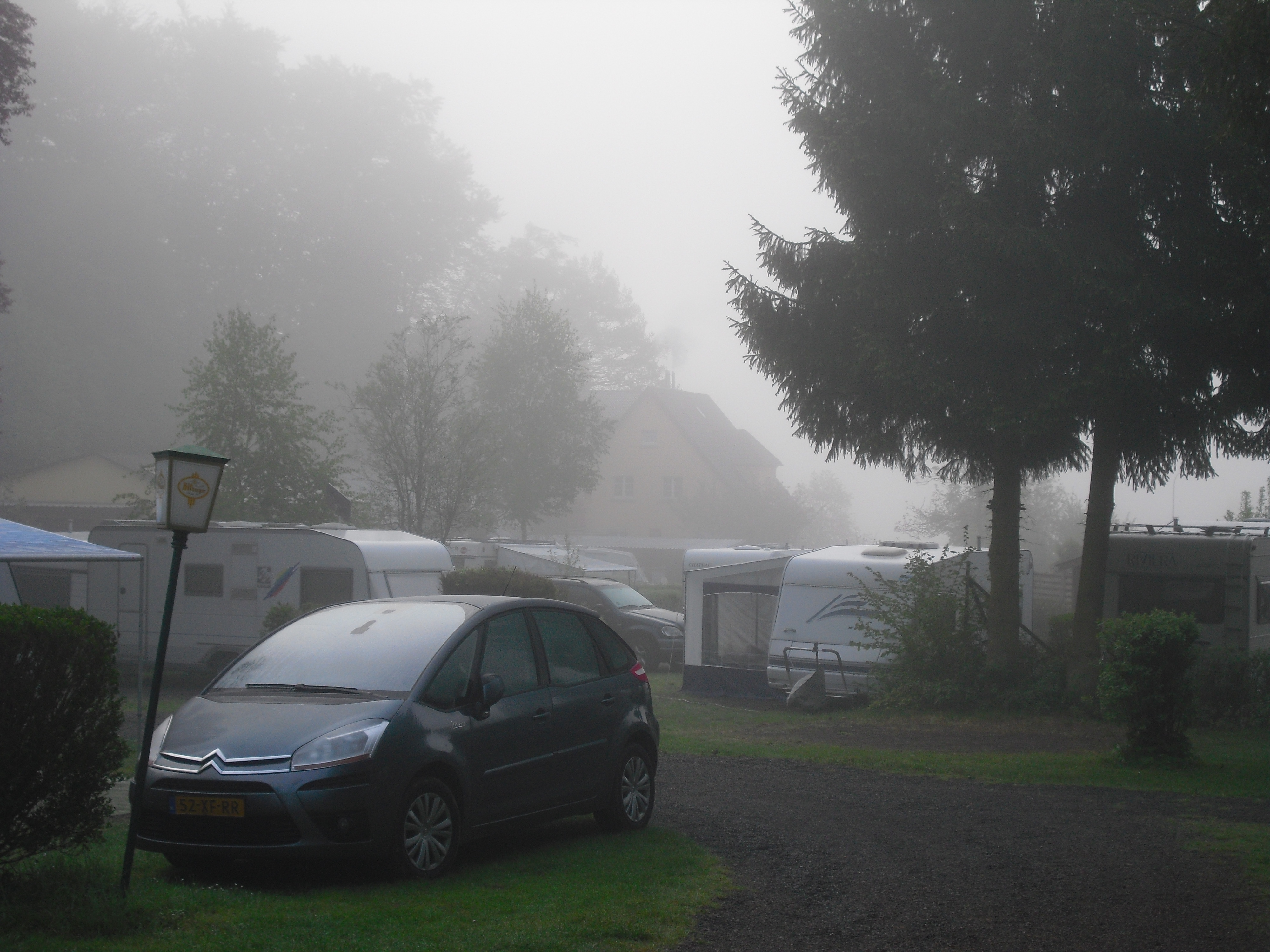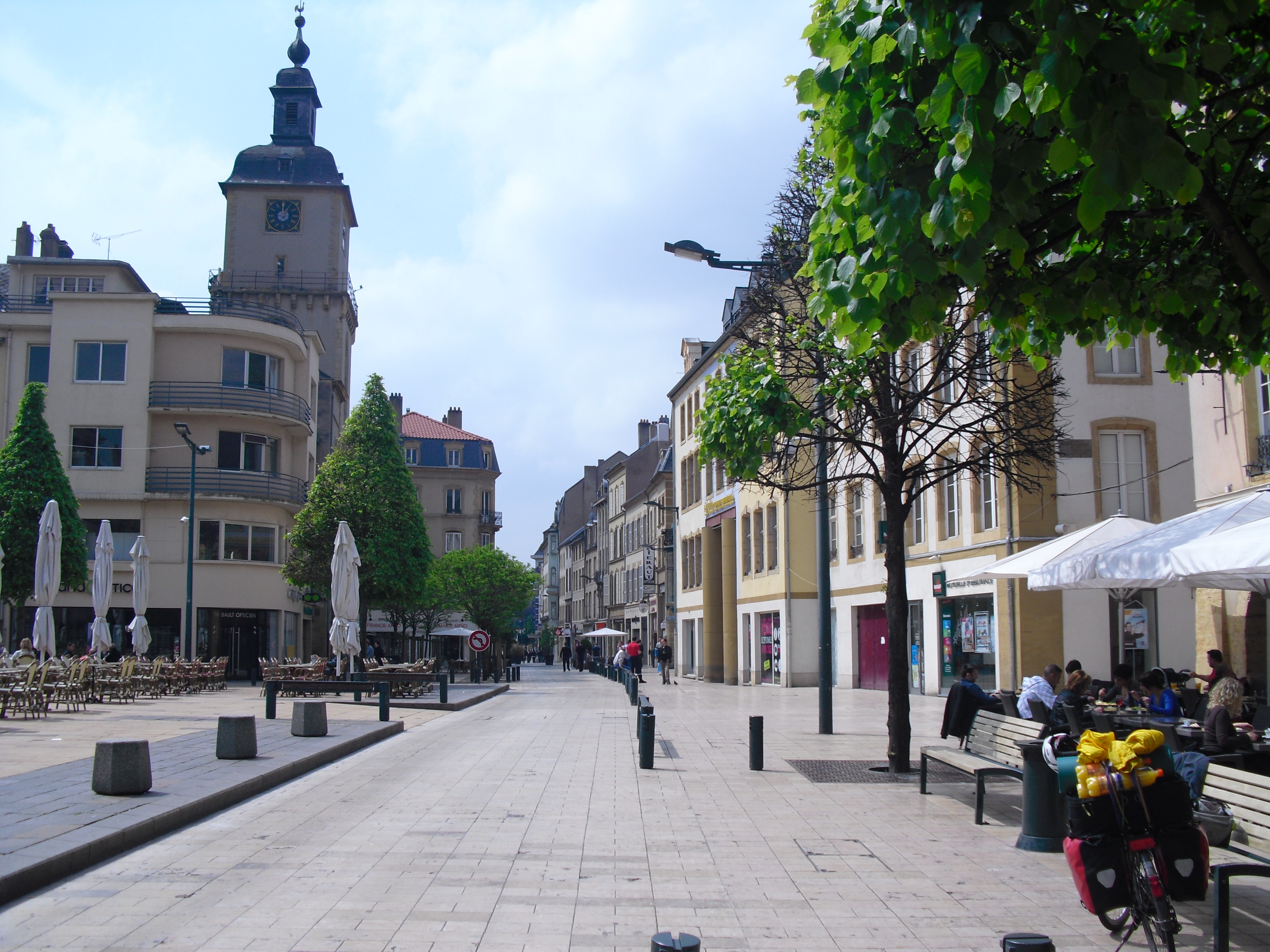 Die gute Nachricht: es hat keinen Nachtfrost gegeben. Die Temperatur ging aber bis auf 3,5 Grad hinunter. Heute morgen war es nebelig. Doch zuerst noch einmal ins Internet und mühsam die wichtigsten eMails beantworten. Dann los, wie immer mit zwei Jacken. Von der Saar zurück zur Mosel ist es recht hügelig. In Perl kurz vor der Grenze setze ich mich völlig durchgefroren in ein Cafe und komme ein letztes Mal über meinen Surfstick ins Netz, so dass ich endlich die Bilder hochladen kann. Ich halte mich lange auf. In Frankreich scheint tatsächlich für zwei Stunden manchmal die Sonne. In Thionville setze ich mich auf eine Bank und schlafe fast ein. Doch weiter geht es nach Metz. Hier ist es wieder vorbei mit dem Sonnenschein. Ständig befürchte ich, dass es zu regnen beginnt. Metz muss eine fromme Stadt sein. So viele große Kirchen! Zum Aufwärmen setze trinke ich in einem Cafe einen Kaffee und will ein Baguette oder irgendetwas essen. Ich habe nämlich den ganzen Tag noch nichts gegessen. Hat man aber nicht. Ist auch egal. Ich freue mich auf das Abendessen auf dem geplanten Campingplatz. Bestimmt hat der ein Restaurant. Von Metz geht es noch ein Stück weit an der Mosel entlang bis Pont-á-Mousson. Doch dann führt die Straße wieder durch bergiges Gelände bis 384 m Höhe. Das ist im Vergleich zu den Alpen nicht viel, aber es geht ständig rauf und runter. Ich ziehe beide Jacken aus. Die lange Hose bleibt. Wenn ich Pause mache, ziehe ich eine Jacke wieder an, nach einem weiteren Kilometer wieder aus. So geht das den ganzen Nachmittag. Wenn die Muskeln nicht mehr wollen (ja, Michael, auch das kommt vor), verspreche ich ihnen ein Stück Schokolade und schalte vorübergehend einen Gang zurück. Dann geht es wieder. Es zieht sich wieder zu und wird teilweise dunkel, aber es regnet erst kurz vor Erreichen des Campingplatzes. Auch heute schaffe ich nicht mehr als 131 km, aber ich bin auch spät weggekommen und habe mich unterwegs ziemlich aufgehalten. Aber ich bin doch im Urlaub und nicht auf der Flucht. Auf diesem Campingplatz hat die Rezeption schon geschlossen, ich baue trotzdem mein Zelt auf. Die Campingplätze sind hier nicht so häufig. Kein Restaurant. Eine halbe Tafel Schokolade muss heute reichen. Es regnet leicht, ist aber nicht mehr so kalt (12 Grad). Internet gibt es hier auch nicht. Da muss ich morgen mal sehen, wo ich ins Netz komme. |