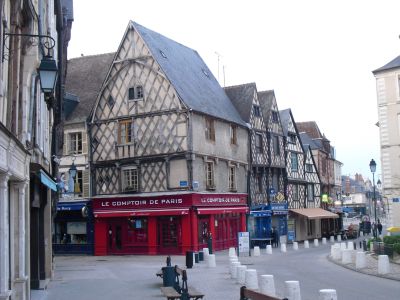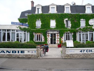 So ein Hotel hat schon seine Vorteile. Zum Beispiel ein ausgiebiges Frühstück. Auch das T-Shirt konnte ich waschen und trocknen. Kalt ist es immer noch, die Temperaturen werden einfach nicht zweistellig. Aber es regnet nicht, und für 5 min kommt sogar die Sonne heraus. Man arrangiert sich, ein heißer Tee in einer Bar an der Straße tut gut. Meine Muskeln und Knie ächzen, war wohl gestern ein bisschen viel. Dagegen hilft einfach weitertrampeln, dann beruhigen sie sich wieder. Ist jedenfalls meine Erfahrung, so auch heute. Heute fahre ich ausschließlich auf der N151, einer Nationalstraße, die im Atlas rot eingezeichnet ist. Das sieht man der Straße aber nicht an, sie ist recht schmal, so dass Autos, die mich überholen, abbremsen müssen, wenn ihnen ein Fahrzeug entgegen kommt. So ganz wohl fühle ich mich nicht dabei, aber es geht alles gut. Ich wundere mich, dass fast gar keine Lastwagen fahren. Alle Geschäfte haben geschlossen, und insgesamt ist sehr wenig Verkehr. Da fällt mir ein, dass heute Himmelfahrtstag ist, natürlich auch in Frankreich ein Feiertag. Zum Glück habe ich noch genug Getränke und Schokolade, so dass es für heute reicht. Den Campingplatz in Bourges finde ich, indem ich einen Stadtplan fotografiere und mich dann nach dem Bild orientiere. Es ist so verzwickt, dass man es sich einfach nicht merken kann. Zudem verwirren mich die französischen Namen. Wird dringend Zeit, dass ich französisch lerne. Ich baue mein Zelt auf und gehe ca. 1 km in die bemerkenswerte historische Altstadt, nicht nur wegen der riesigen Kathedrale, sondern auch wegen der kleinen Gässchen rings herum mit zum Teil noch mittelalterlichen Häusern. Hier finde ich ein Restaurant, wo ich gut esse und diesen Bericht schreibe. Ich habe nun in sieben Tagen etwa 1000 km geschafft, trotz widriger meteorologischer Bedingungen. Wenn das so weitergeht, komme ich pünktlich in Portugal an und kann mir sogar noch ein, zwei Tage Pause leisten. Mal sehen, wie weit ich morgen komme. Hoffentlich langsam in wärmere Gefilde. |